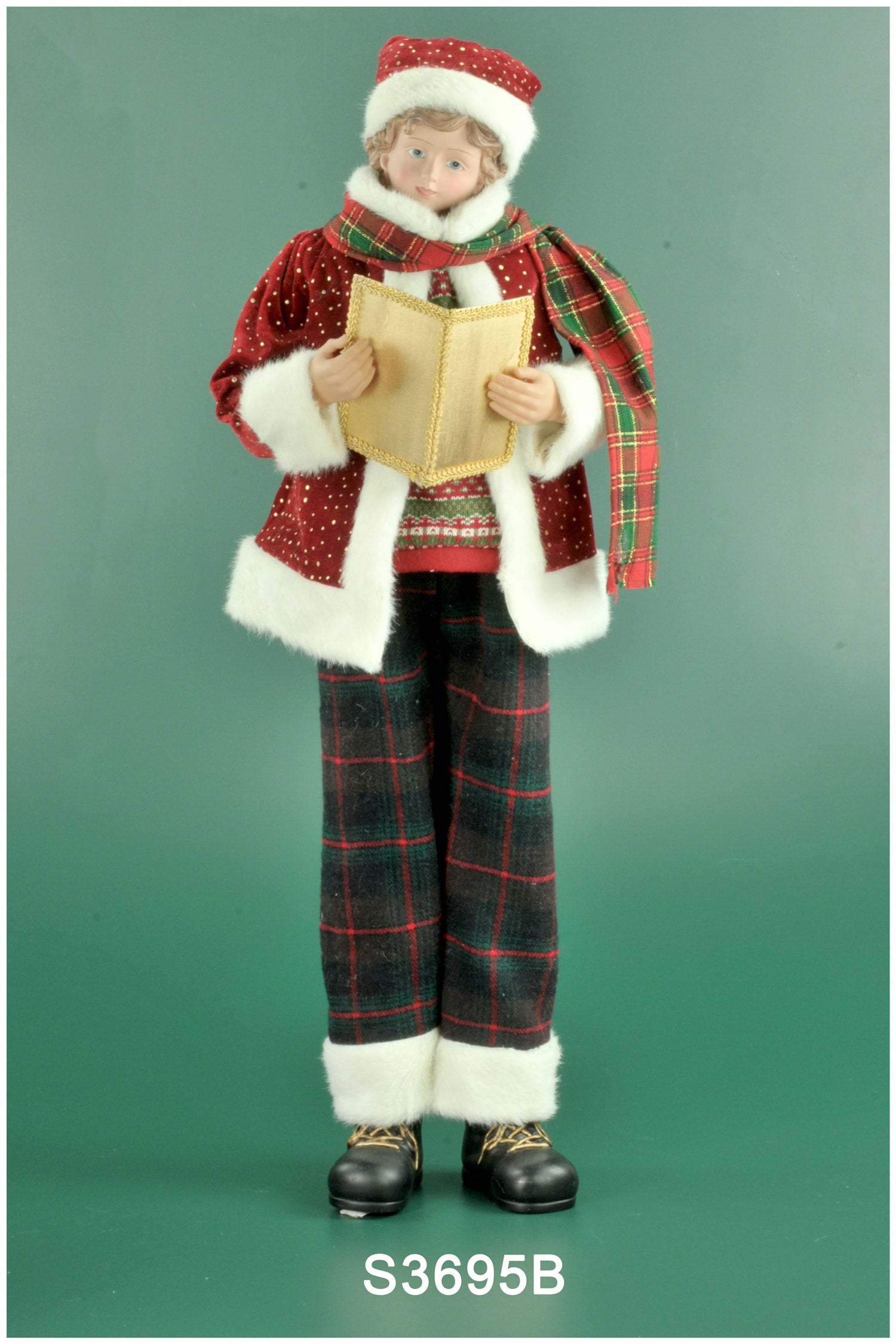 Caroller- 36" Red Fabric Standing Boy with Gold Choir Book