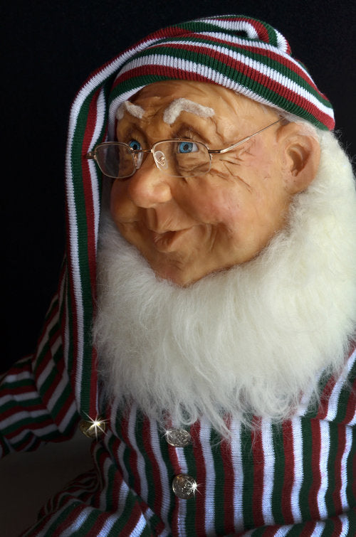 Drawing inspiration from several places in her past, renowned artist Jacqueline Kent has created an extensive line of collections. She designs and hand-sculpts the originals of all her creations, and the same care is put into every figure’s life-like facial features. This 36-Inch Jacqueline Kent Candy Cane Sitting Elf is beautifully detailed, from his life-like face to his black boots. He comes dressed in a candy cane suit, and also has a burgundy tuxedo suit that can be worn on top. Casual or fancy, how will your elf want to greet his guests?