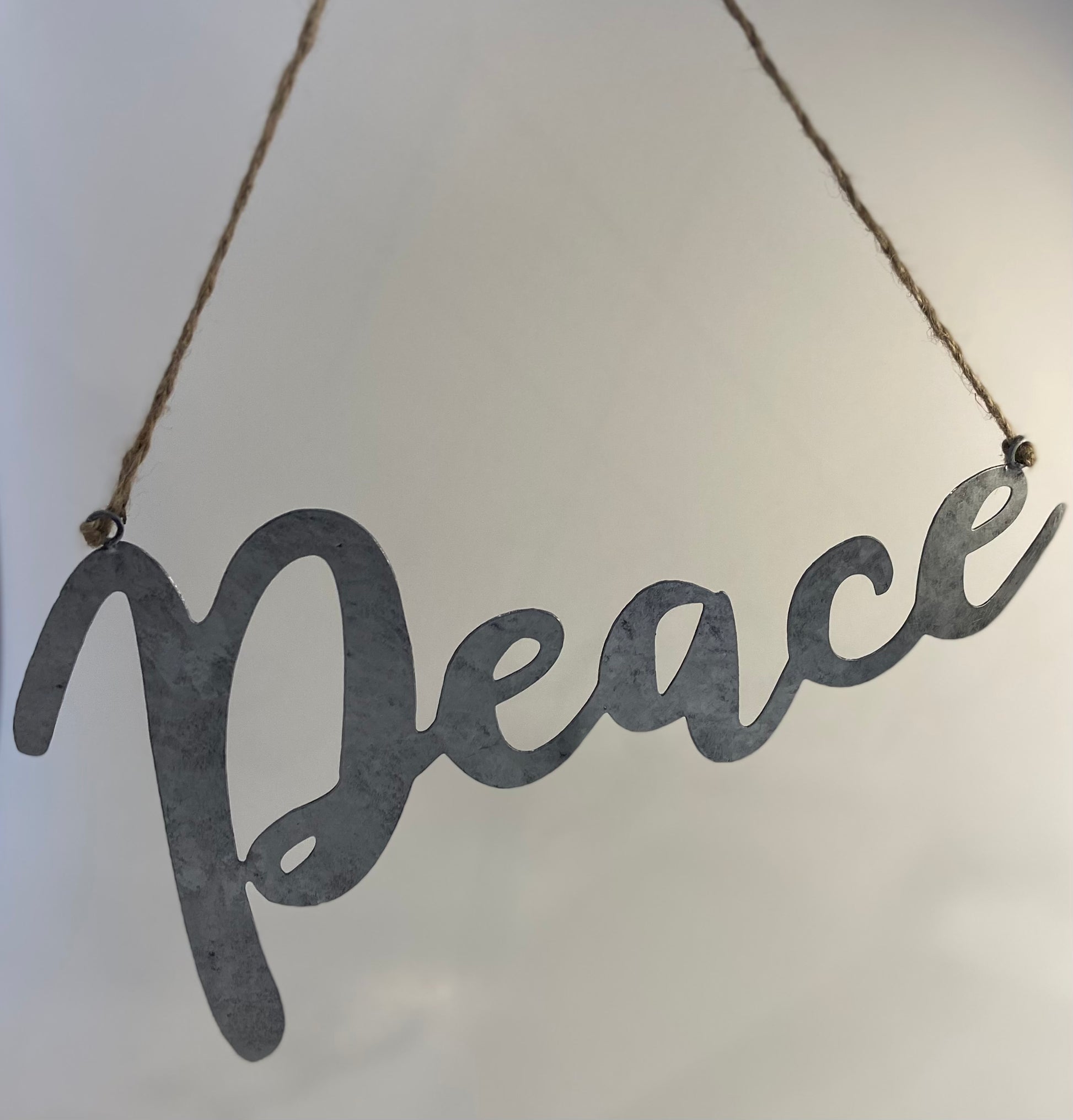 Metal Peace ornament. Fits perfectly on a tree, wreath, garland or whatever you can imagine.